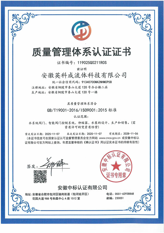 質量管理體系認證證書